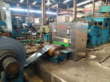 2007年公司通過(guò)引進(jìn)國(guó)外先進(jìn)的靜電涂裝技術(shù),結(jié)合國(guó)內(nèi)各類中小型金屬板(帶、絲)冷軋機(jī)組的實(shí)際應(yīng)用情況,成功的研發(fā)出XCTZ-3型系列金屬板(帶)冷軋靜電涂油機(jī)、XCTZ-H101焊絲靜電涂油機(jī)、XCTZ-D刀帶靜電涂油機(jī),其高壓力微流量雙流體霧化靜電涂油技術(shù)已在國(guó)內(nèi)處于領(lǐng)先地位.每平米0.3克(單面)的涂油量已在實(shí)際應(yīng)用中得到滿意的效果.